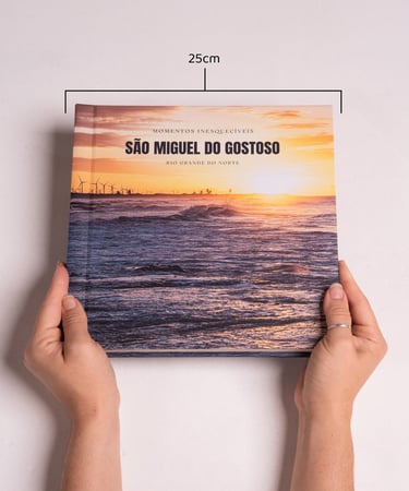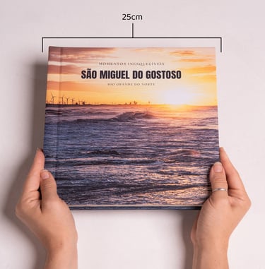 A fábrica imprime com qualidade premium e o hóspede recebe o fotolivro em até 24h direto no hotel ou pelos Correios em casa.