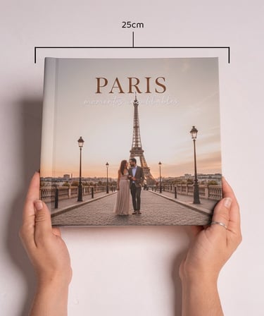 Nossa IA monta o álbum em 3D, o cliente escolhe a capa preferida e realiza o pagamento online.