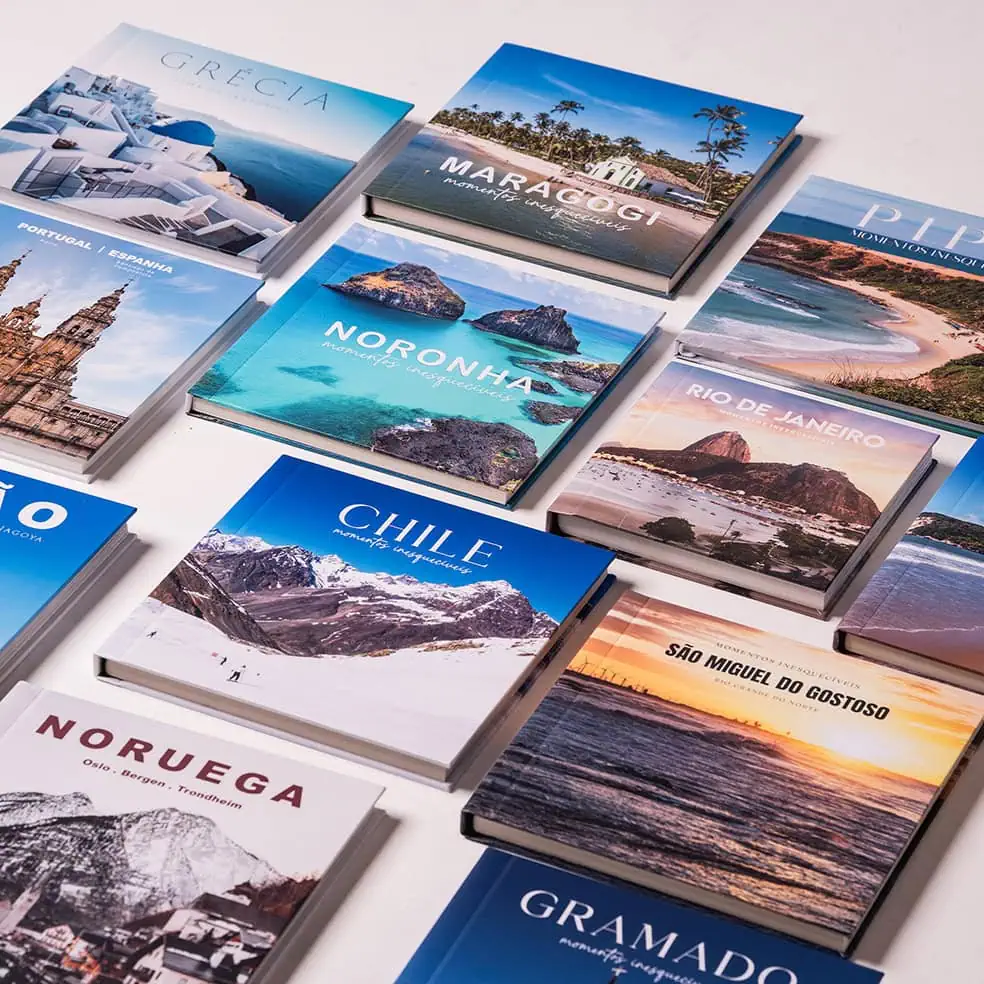 É um serviço para transformar as fotos de viagem do seu celular em um fotolivro impresso com qualidade profissional, preservando as suas melhores lembranças em formato físico.