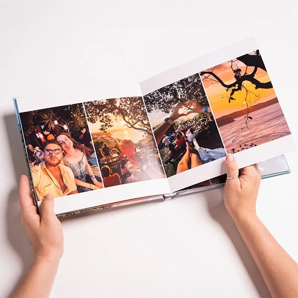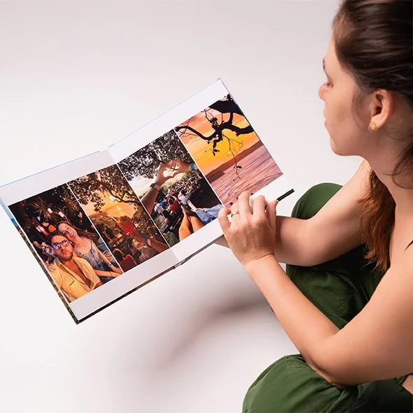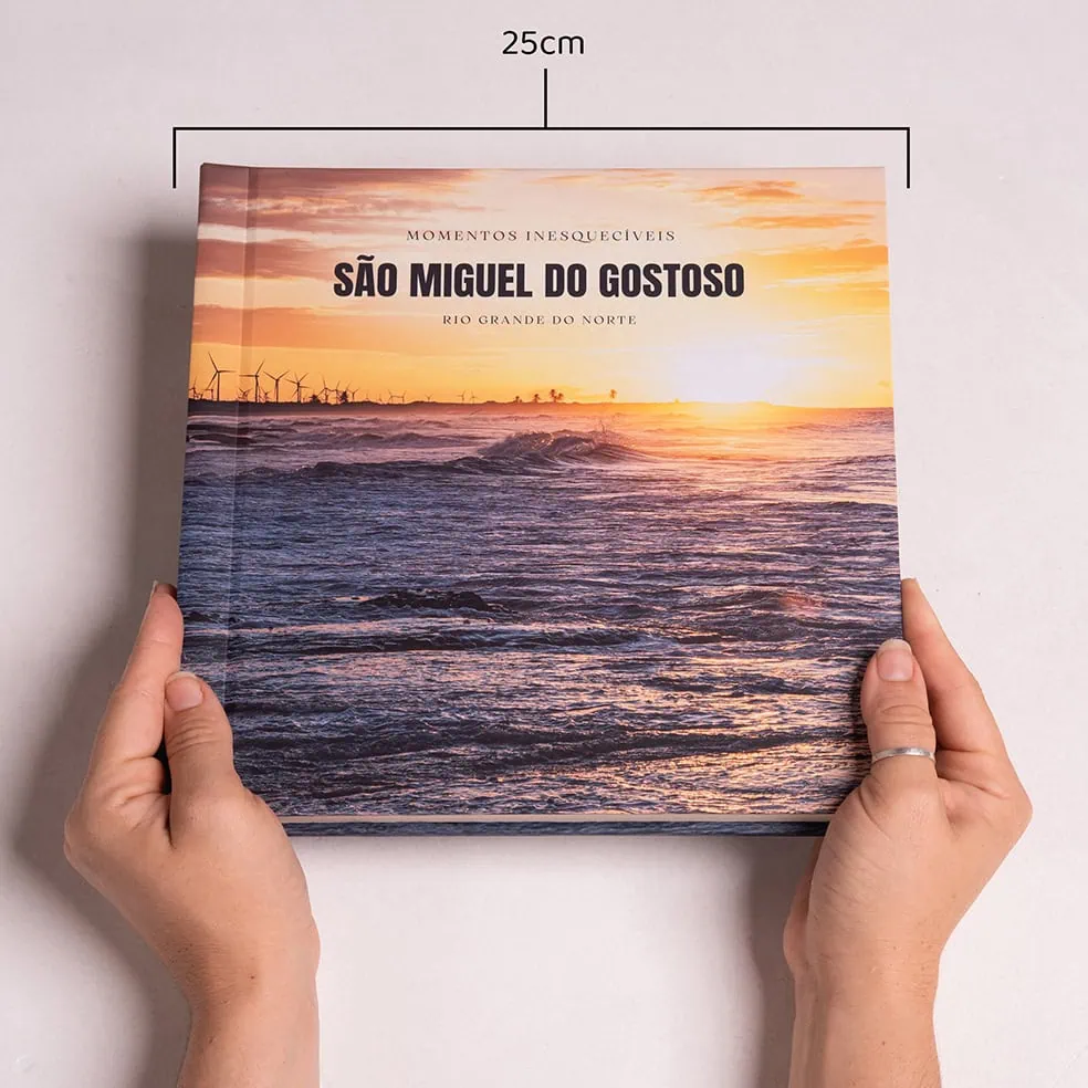 Nossos fotolivros são produzidos com impressão fotográfica profissional em papel de alta durabilidade, com acabamento premium de laboratório especializado, garantindo cores vivas e qualidade superior.